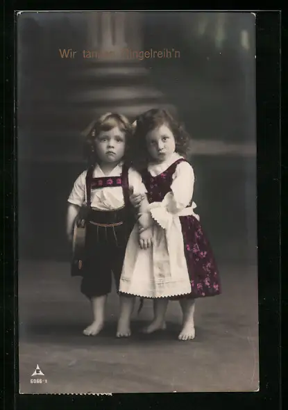 AK Wir tanzen Ringelreih`n, Kinderchen in Tracht