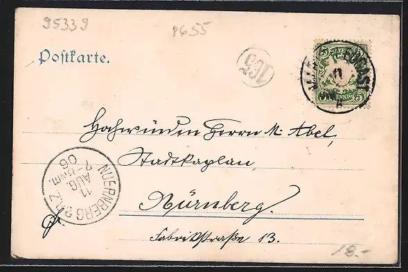 alte Ansichtskarte, gelaufen 1906, guter Zustand