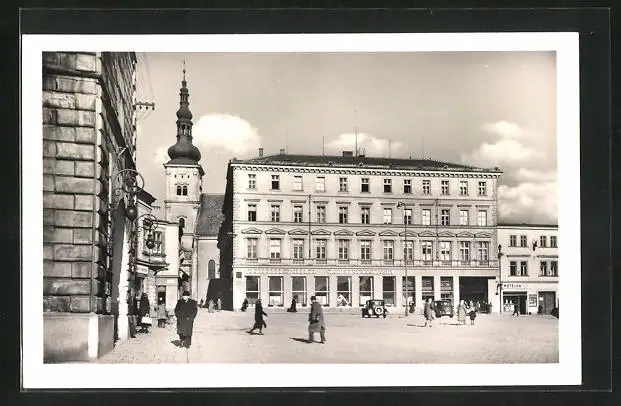 AK Wischau / Vyskov, Strassenpartie mit Sparkasse