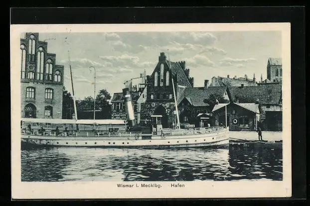AK Wismar i. Mecklbg., Hafen mit Dampfer