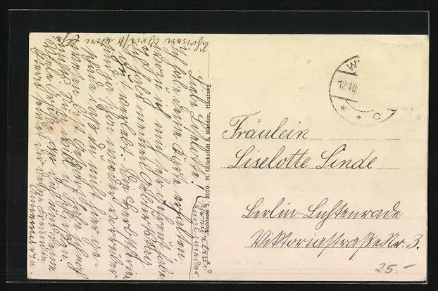 alte Ansichtskarte, gelaufen, Briefmarke entfernt, guter Zustand