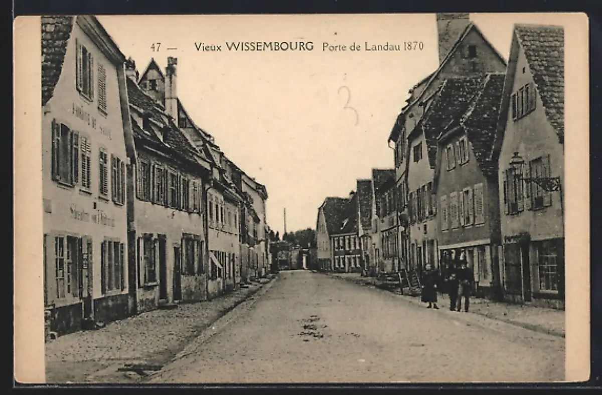 AK Wissembourg, Porte de Landau 1870 dans le vieux quartier