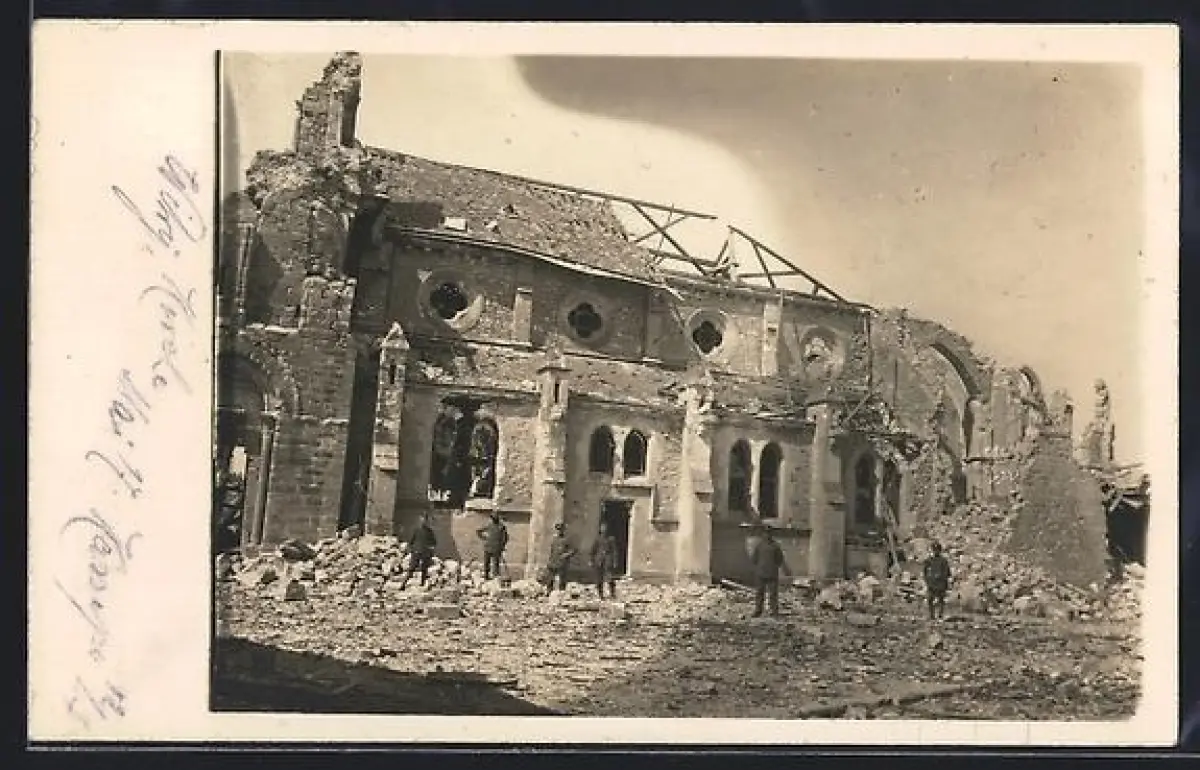AK Witry-lès-Reims, Église en ruines après bombardement en mai 1917