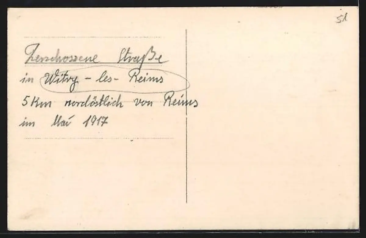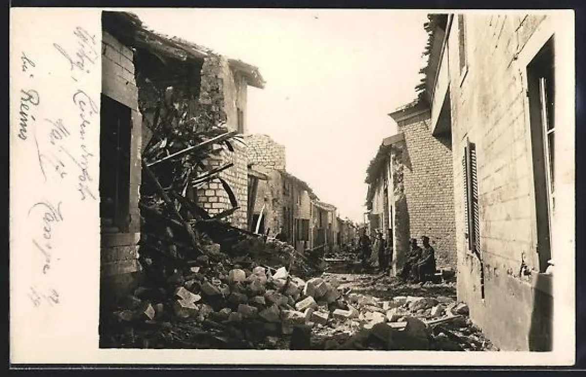 AK Witry-lès-Reims, Rue en ruines après un bombardement