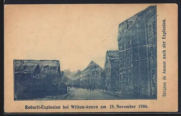 AK Witten-Annen, Roburit-Expolosion 1906, Strassenpartie in Annen nach der Explosion