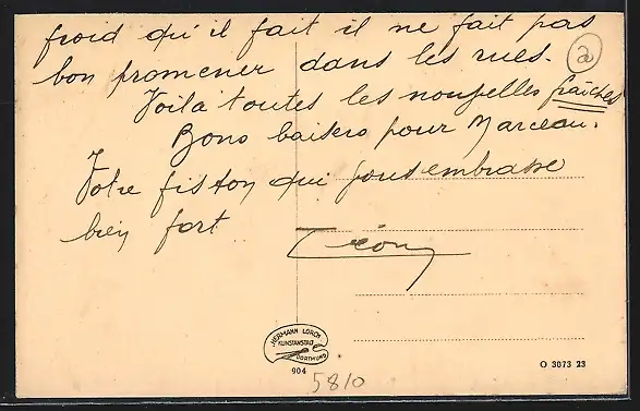 Personenbezogene Daten auf der Rückseite der Karte wurden durch blauen Textmarker unkenntlich gemacht. Die blauen Stellen sind auf die Vorderseite durchgeweicht und wirken sich negativ auf das Postkartenfoto aus