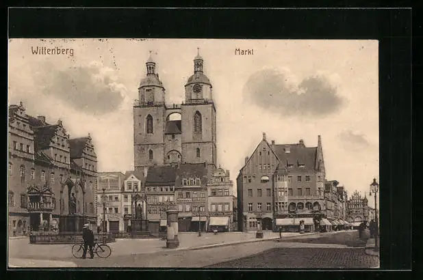 AK Wittenberg, Markt mit Kirche und Geschäften