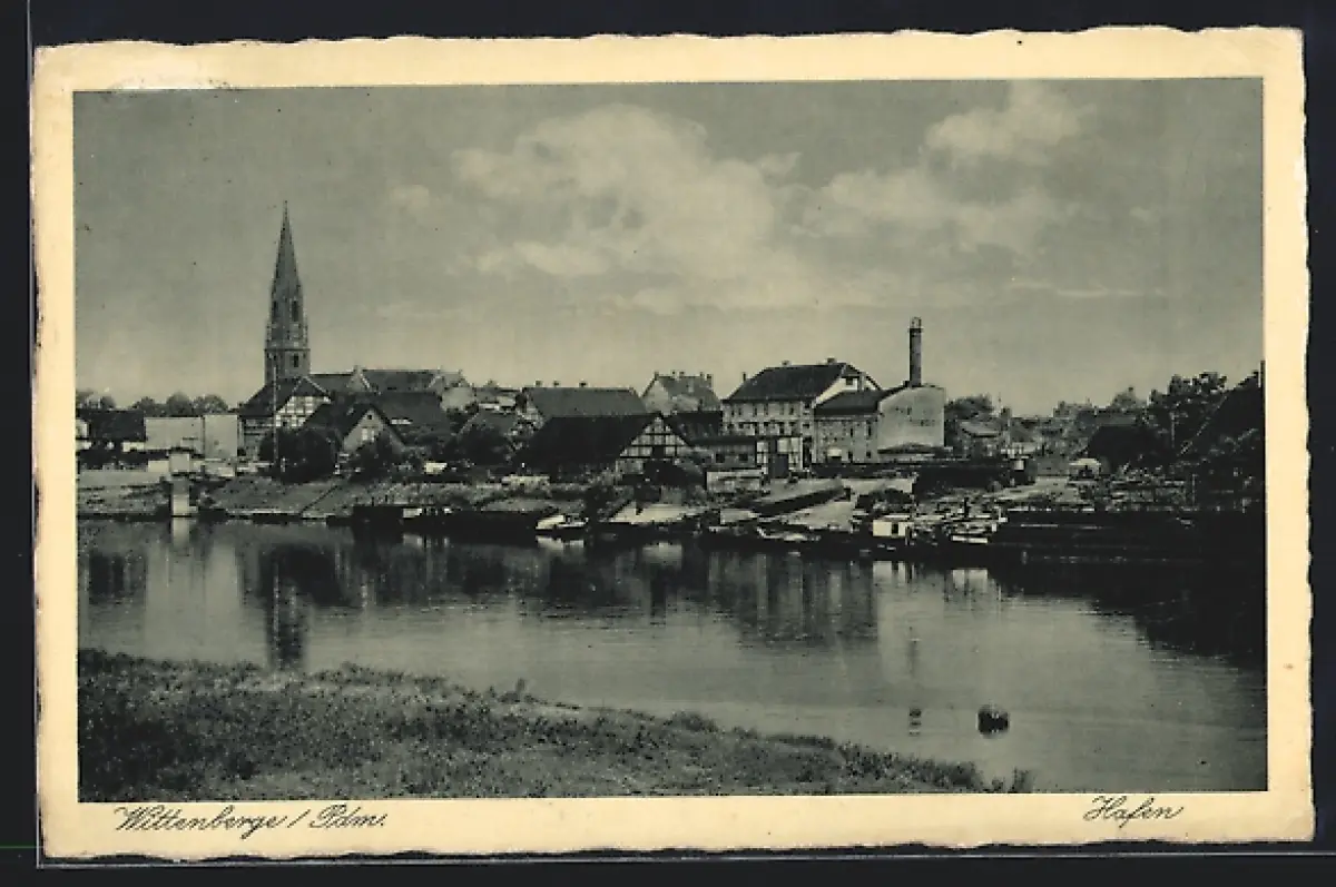 AK Wittenberge, Panorama m. Hafen