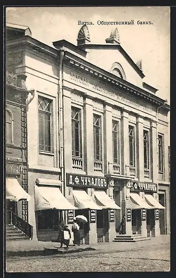 AK Wjatka, Ansicht des öffentlichen Bankgebäudes mit Strassenansicht