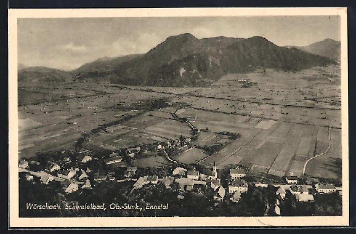 AK Wörschach /Ennstal, Panorama mit Bergen