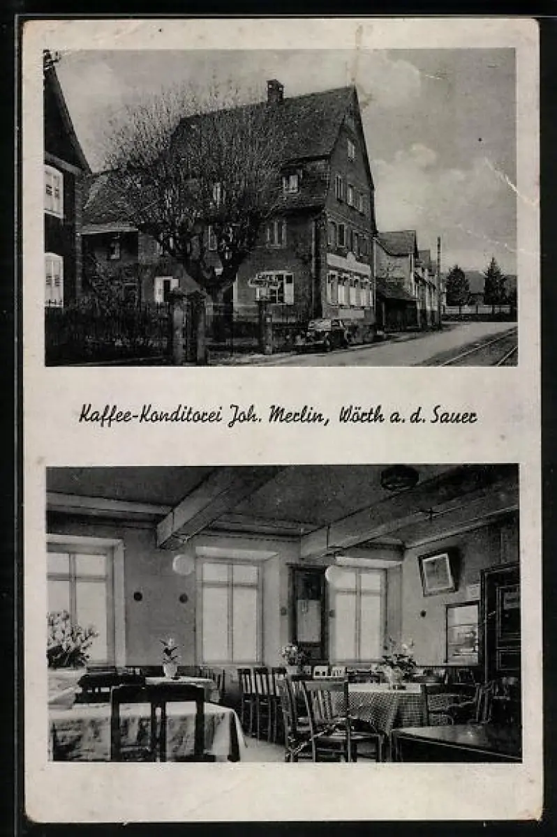 AK Wörth a. d. Sauer, Kaffee-Konditorei Joh. Merlin