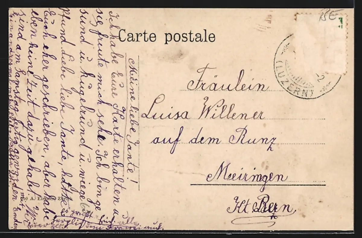 alte Ansichtskarte, gelaufen, Briefmarke entfernt, rückseitig Oberflächenschaden, guter Zustand