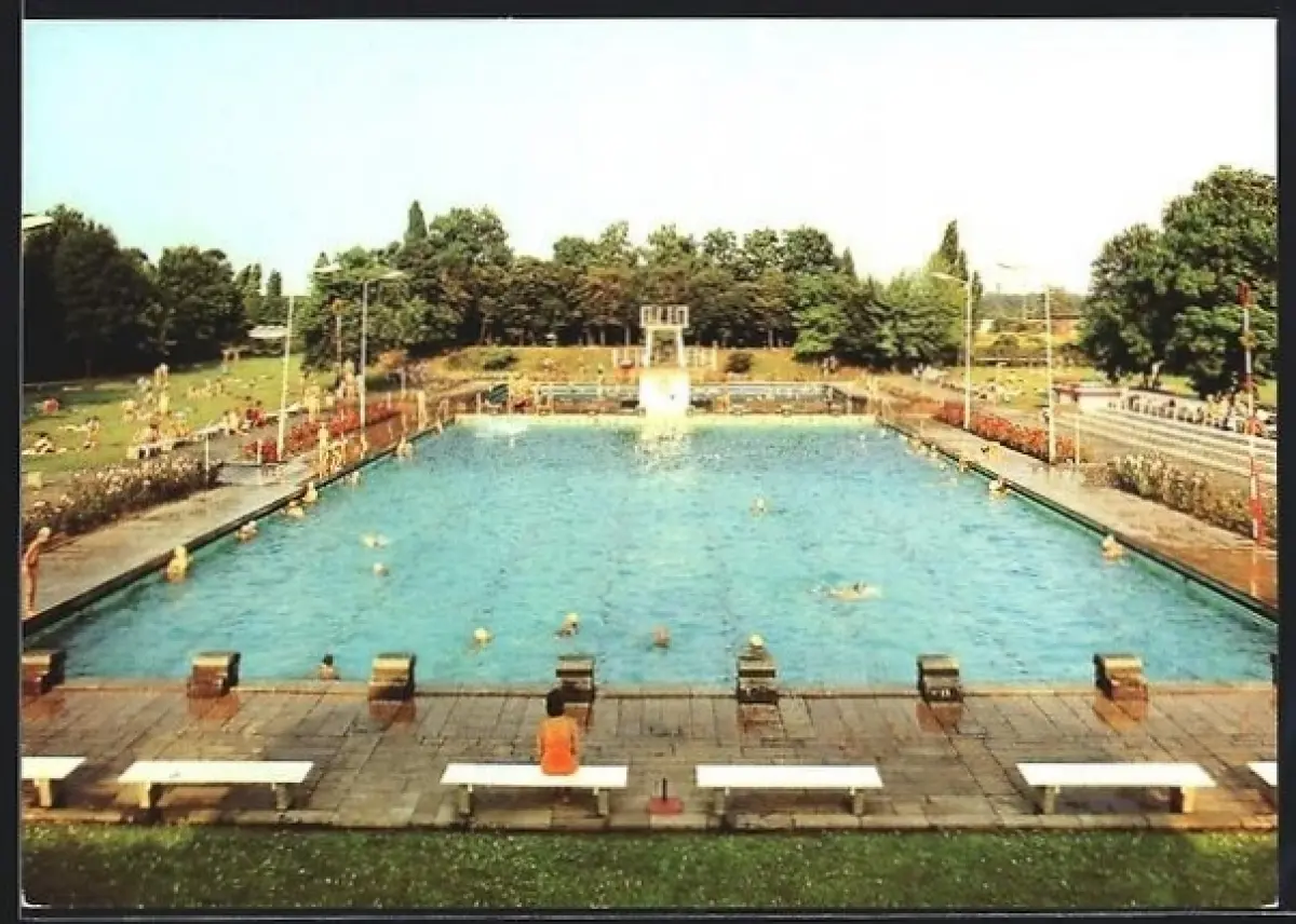 AK Wolfen /Kr. Bitterfeld, Totalansicht vom Schwimmbad
