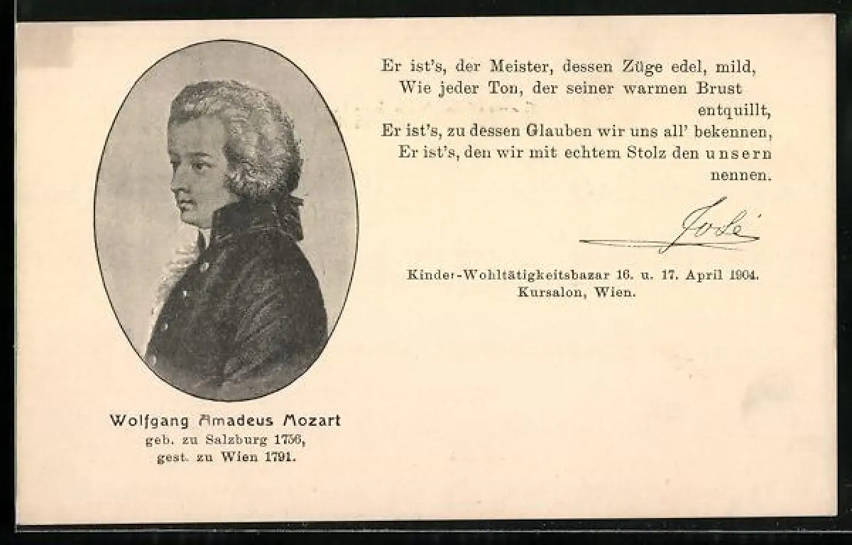 AK Wolfgang Amadeus Mozart, Lebensdaten und Porträt im Profil