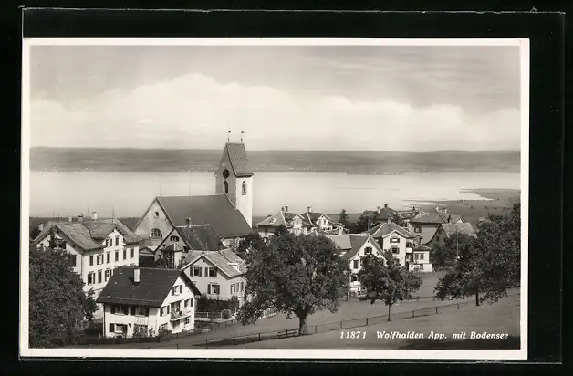 AK Wolfhalden, Teilansicht mit Bodensee aus der Vogelschau