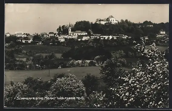 AK Wolfsegg /O. Ö., Ortspanorama aus der Vogelschau