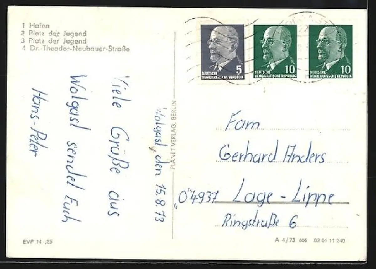 AK Wolgast, Hafen, Platz der Jugend, Dr.-Theodor-Neubauer-Strasse