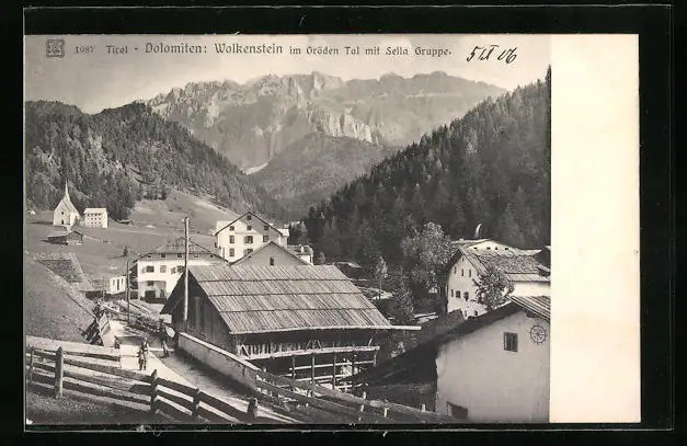 AK Wolkenstein in Gröden, Teilansicht mit Sella Gruppe