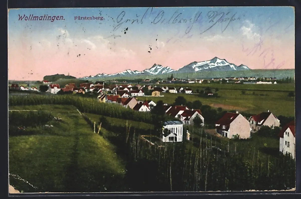 AK Wollmatingen, Fürstenberg, Ortsansicht gegen die Berge