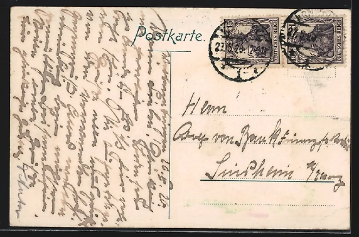 alte Ansichtskarte, gelaufen 1920, Eckknick links unten, Karte wellig, sonst guter Zustand