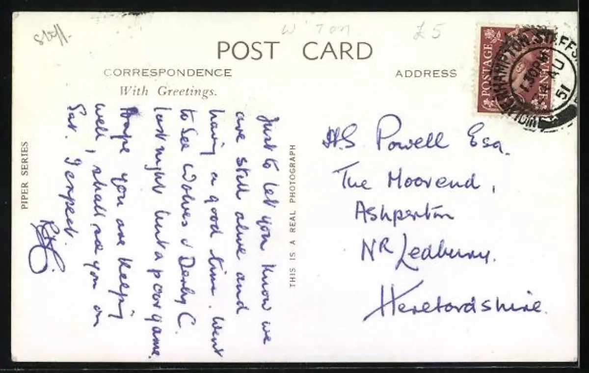 alte Ansichtskarte, gelaufen 1951, guter Zustand