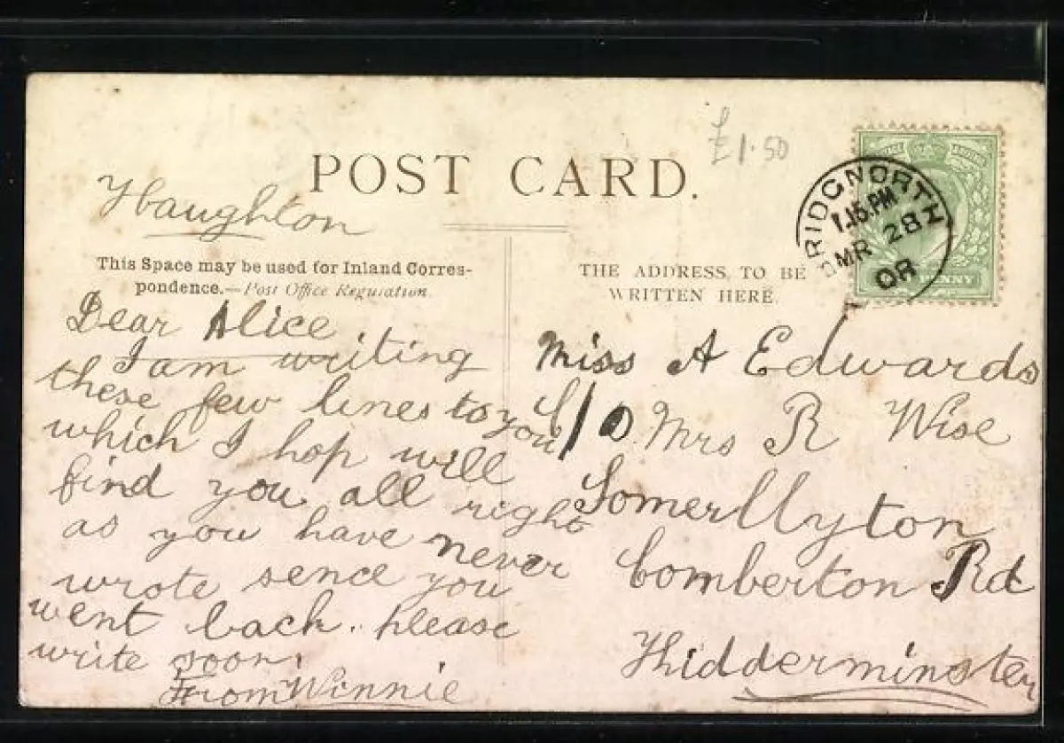 alte Ansichtskarte, gelaufen 1908, Eckknicke re., guter Zustand