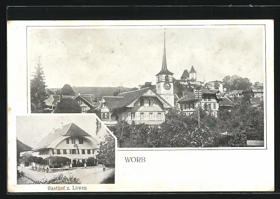 AK Worb, Gasthof zum Löwen, Teilansicht aus der Vogelschau