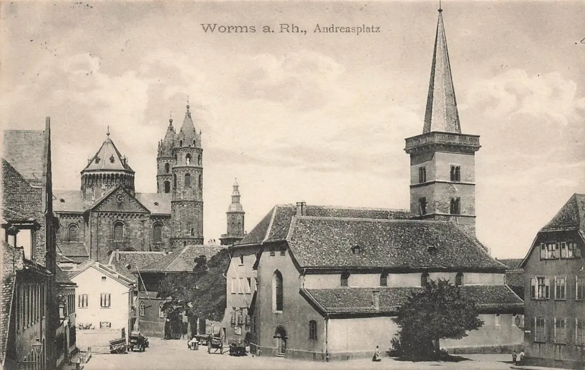 AK Worms Andreasplatz Dom Rheinland-Pfalz 1907 gelaufen Postkarte