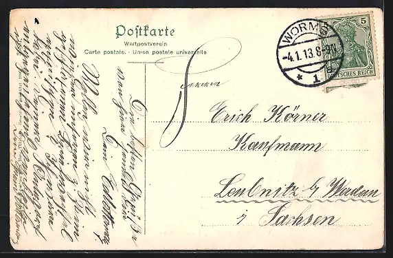 alte Ansichtskarte, gelaufen 1913, guter Zustand