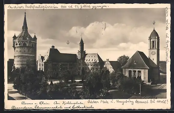 AK Worms a. Rhein. Am Köhlerplatz, Wasserturm, Eleonorenschule, Lutherkirche