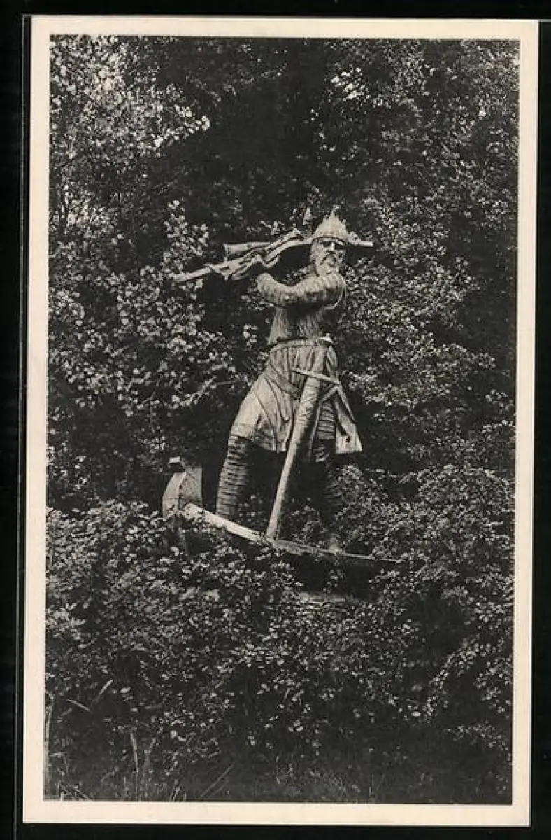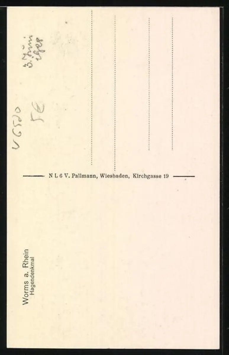 AK Worms a. Rhein, Hagenstandbild umgeben von Blättern
