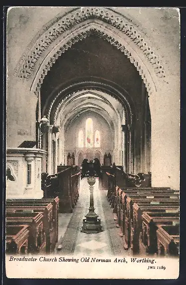 AK Worthing, Broadwater Church, showing Old Norman Arch