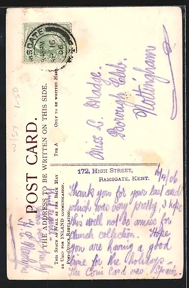 alte Ansichtskarte, gelaufen 1906, Eckknick oben re., guter Zustand