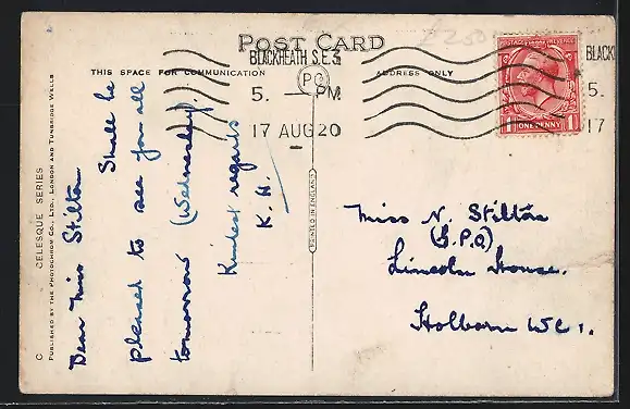 alte Ansichtskarte, gelaufen 1920, Stempelspur, guter Zustand