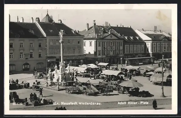 AK Wr.-Neustadt /Niederdonau, Platz mit Geschäften und Denkmal