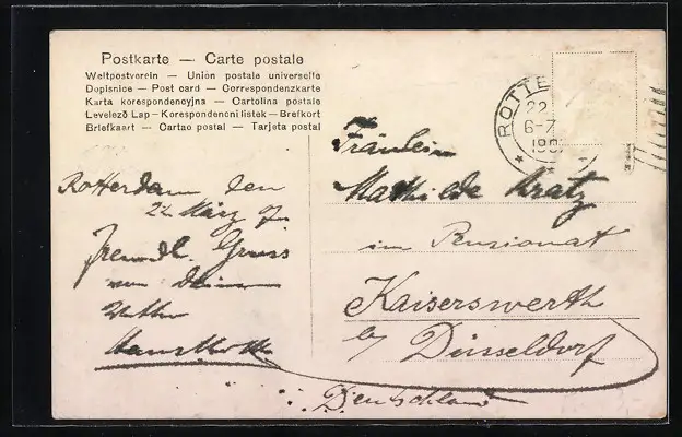 alte Ansichtskarte, gelaufen, Briefmarke entfernt, guter Zustand