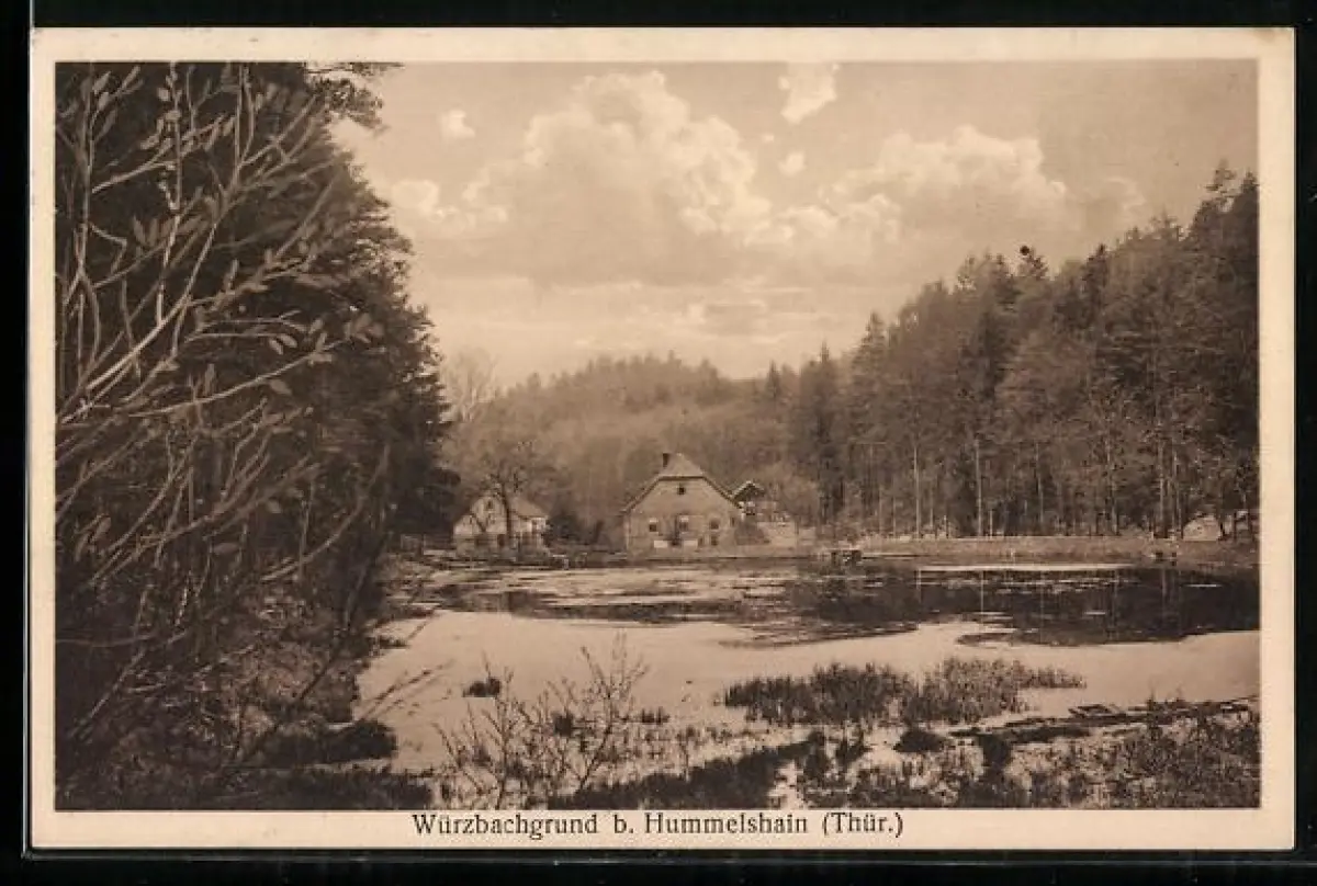 AK Würzbachgrund b. Hummelshain /Thür., Blick auf Häuser mit Gewässer