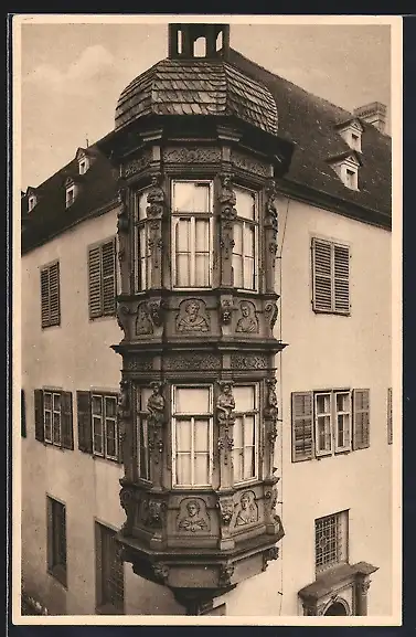 AK Würzburg, Erker am Hof Conti, jetzt Bischöfliches Palais