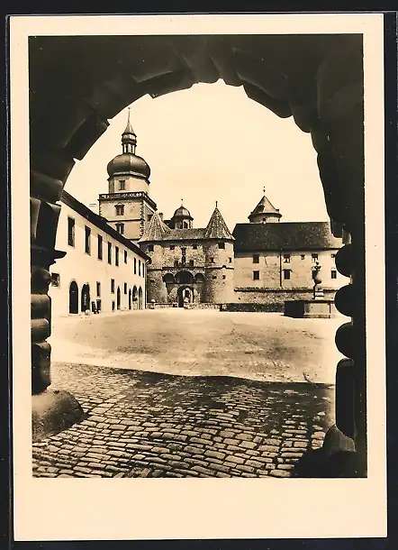AK Würzburg, Festung Marienberg, Burghof mit Scherenbergtor