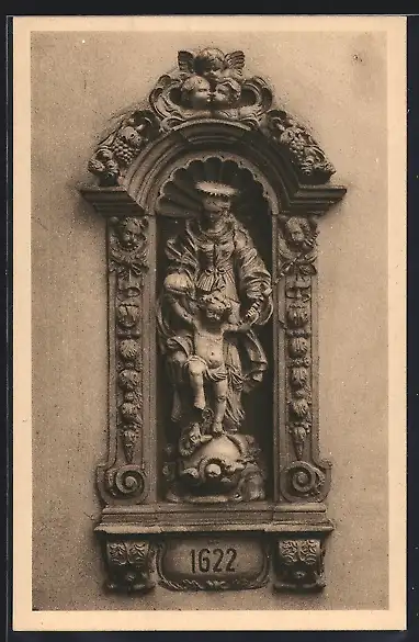 AK Würzburg, Häuserschmuck, Madonna, Strasseneck Dominikanerplatz 1 Ecke Brombachergasse