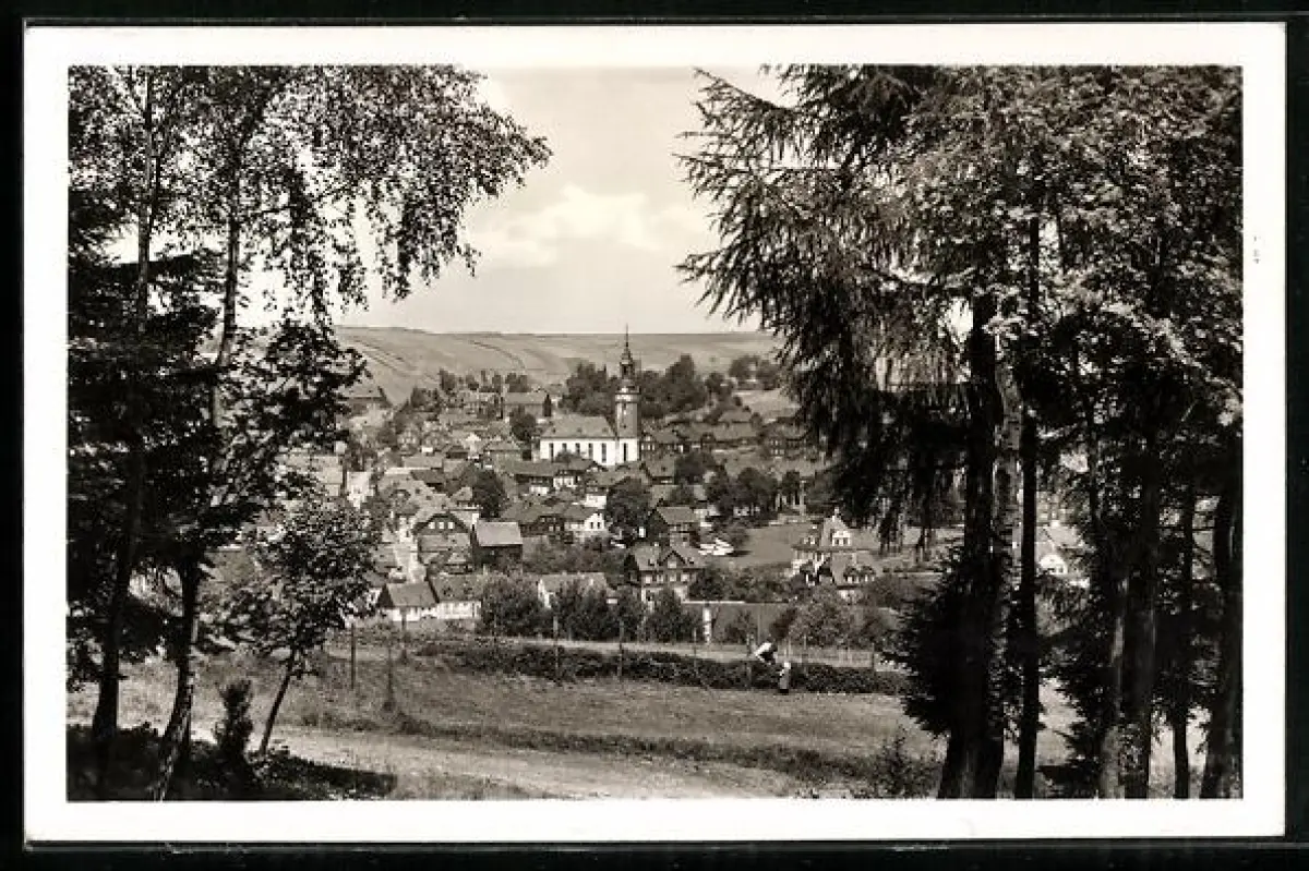 AK Wurzbach, Blick auf die Altstadt mit Villen und Kirche