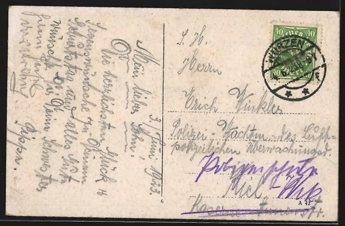 alte Ansichtskarte, gelaufen 1923, Stempelspur, guter Zustand