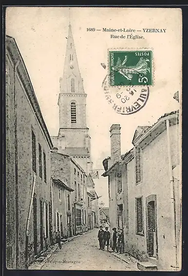 AK Yzernay, Rue de l`Église avec vue sur le clocher