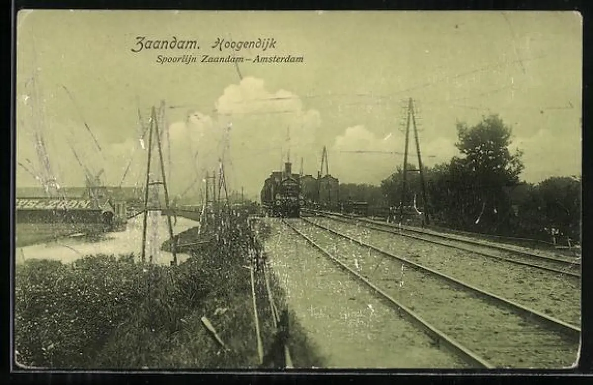 AK Zaandam, Hoogendijk, Spoorlijn Zaandam-Amsterdam