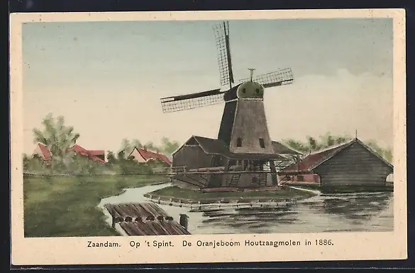 AK Zaandam, Op`t Spint, De Oranjeboom Houtzaagmolen in 1886