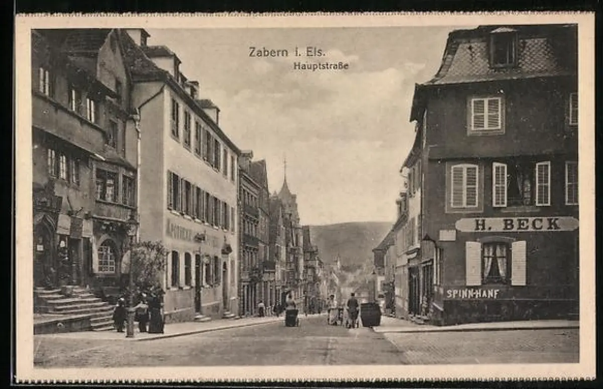 AK Zabern, Hauptstrasse mit Laden H. Beck und Apotheke