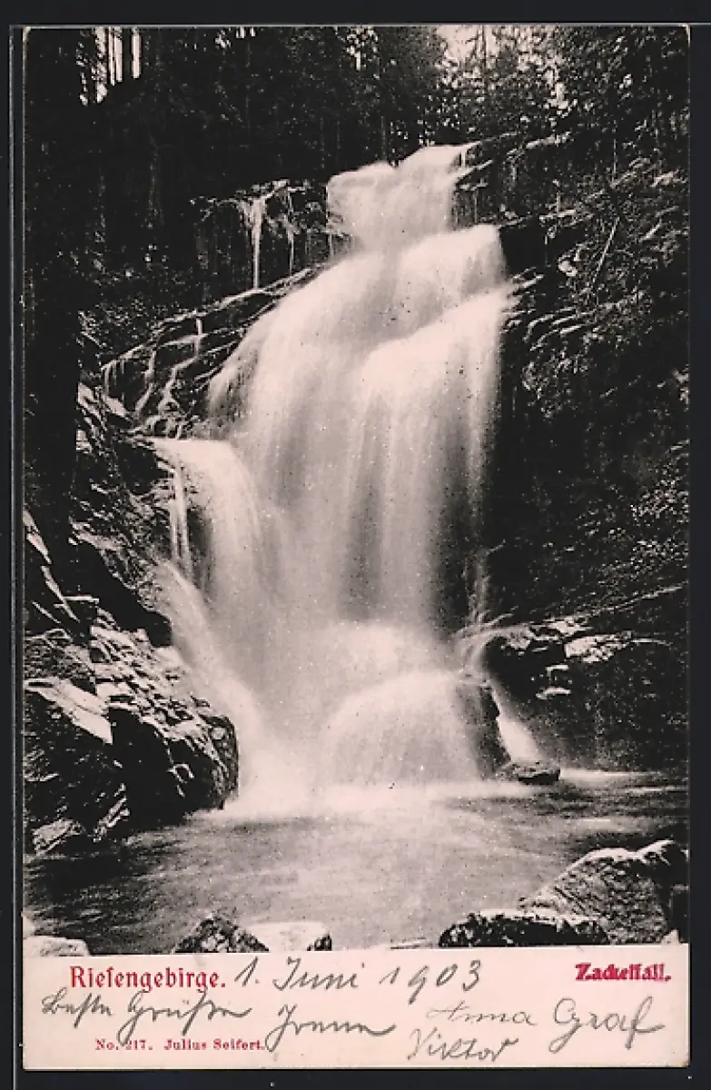AK Zackelfall /Riesengebirge, Blick auf den Wasserfall