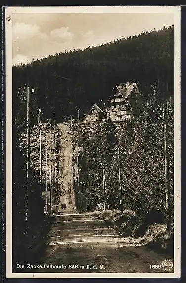 AK Zackelfallbaude, Ansicht Strasse zur Berghütte