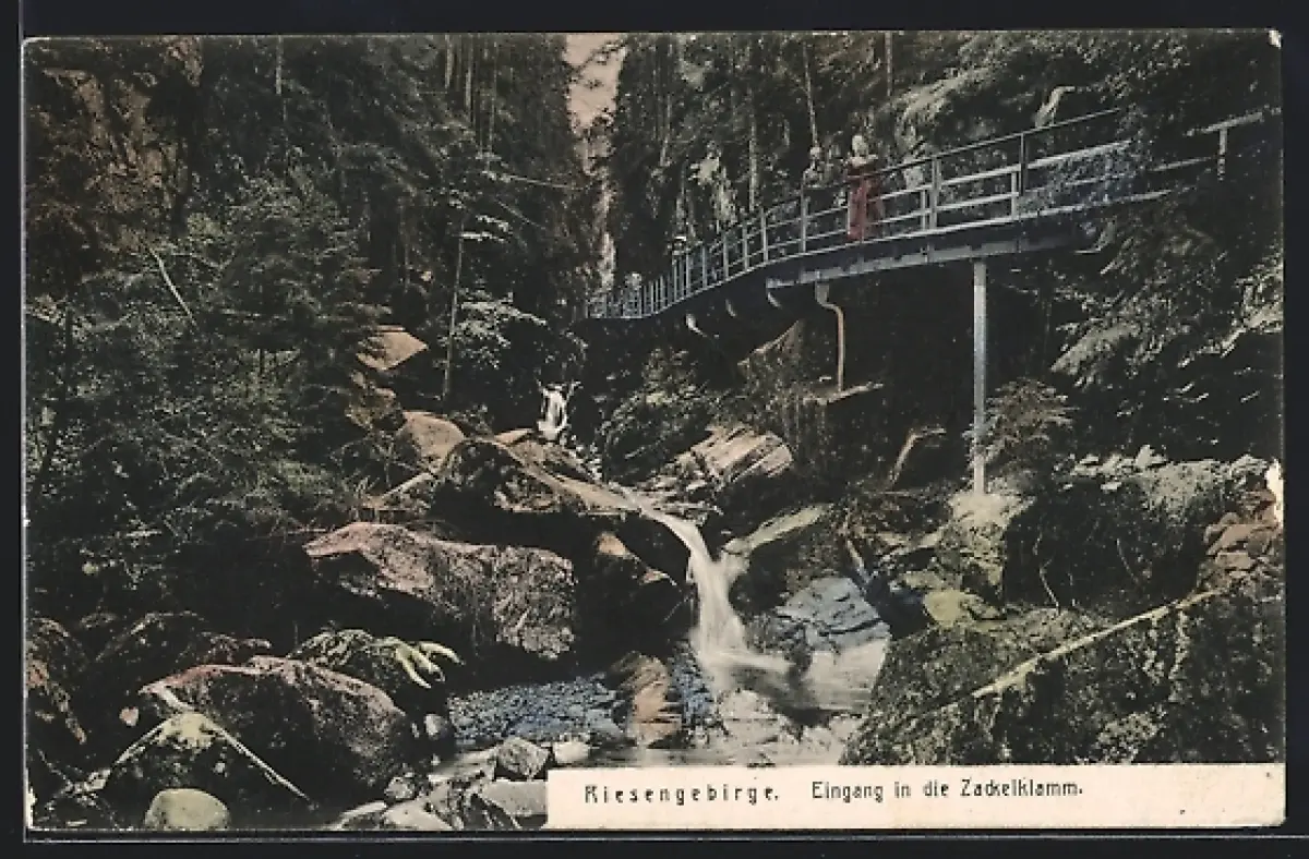 AK Zackelklamm /Riesengebirge, Eingang in die Klamm