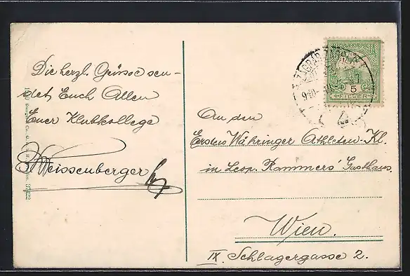 gelaufen 1910, Eckknick und Bugspur re. oben, guter Zustand